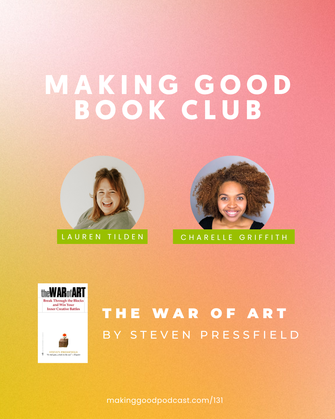 Welcome back to Making Good Book Club! In this episode, my book club co-host, Charelle Griffith and I discuss The War of Art: Break Through the Blocks and Win Your Inner Creative Battles by Steven Pressfield.